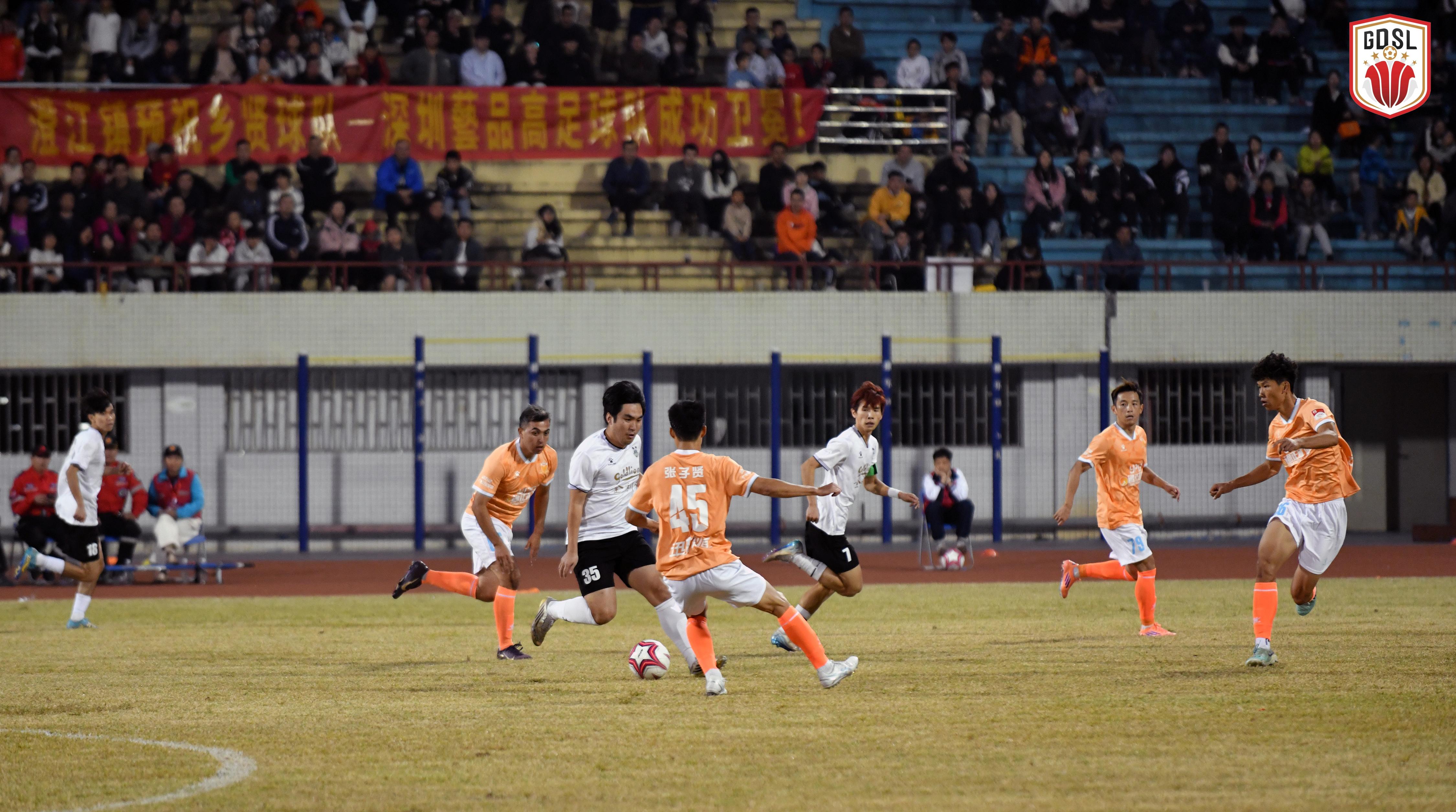 在韶关赛区,深圳藝品高与梅州强民的对决率先进行。首回合以3比4落败的梅州强民背水一战,开场即将压力化为动力,展现出强烈的求胜欲望,屡次发起极具威胁的冲击。而手握晋级主动权的深圳藝品高沉着应对,以流畅短传调动对手,上半场两队互交白卷。下半场第66分钟,深圳藝品高中场陈富海禁区外世界波吊射打破僵局,第72分钟梅州强民由中场曾亿龙扳平比分,比赛再生悬念。补时阶段,凭借替补后卫李逸华的定位球远射,深圳藝品高以两回合总比分6比4昂首挺进决赛。